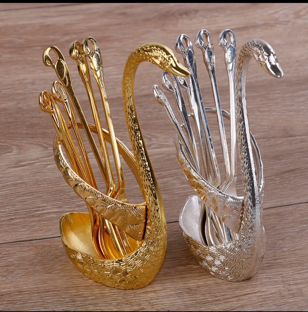Elevate your dining experience with our Swan Metal Holder, complete with 3 spoons and 3 forks. Ideal for desserts, fruits, coffee, tea, and general serving, this elegant holder adds a touch of sophistication to your table. Crafted from durable metal with a graceful swan design, it combines functionality with style, making it perfect for both casual and formal settings.